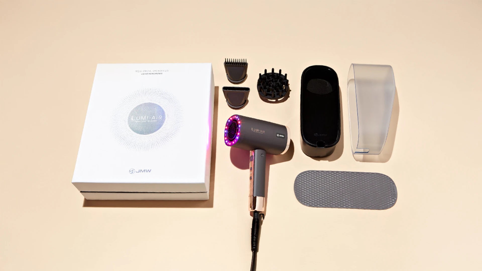 Only JMW Lumi Air 2.0's combined care solution simultaneously enables hair drying through the BLDC motor and scalp care through LED therapy with three types of effective wavelengths.